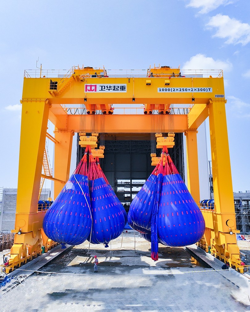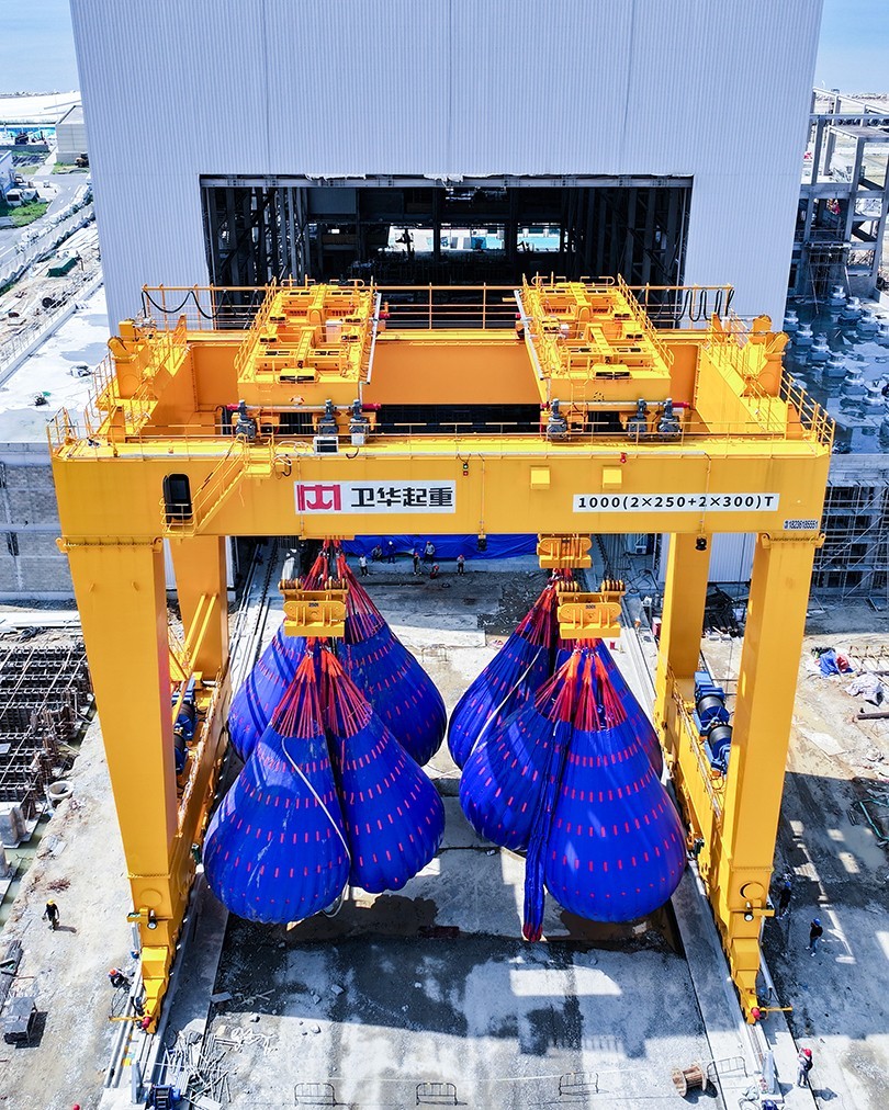 近日,在福建省福清市江阴港国家级海上风电研究与试验检测基地,河南bwin·必赢1000t双主梁门式起重机顺利完成重载实验并投入运营。